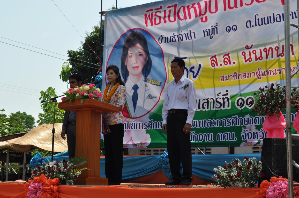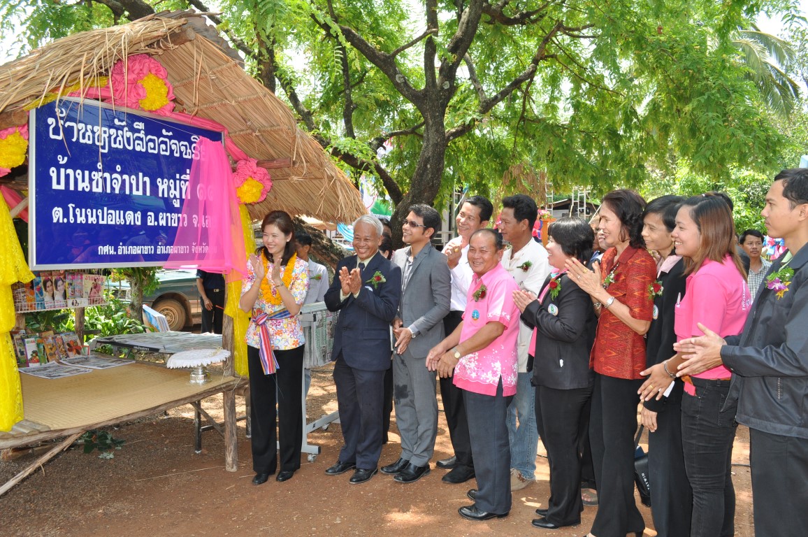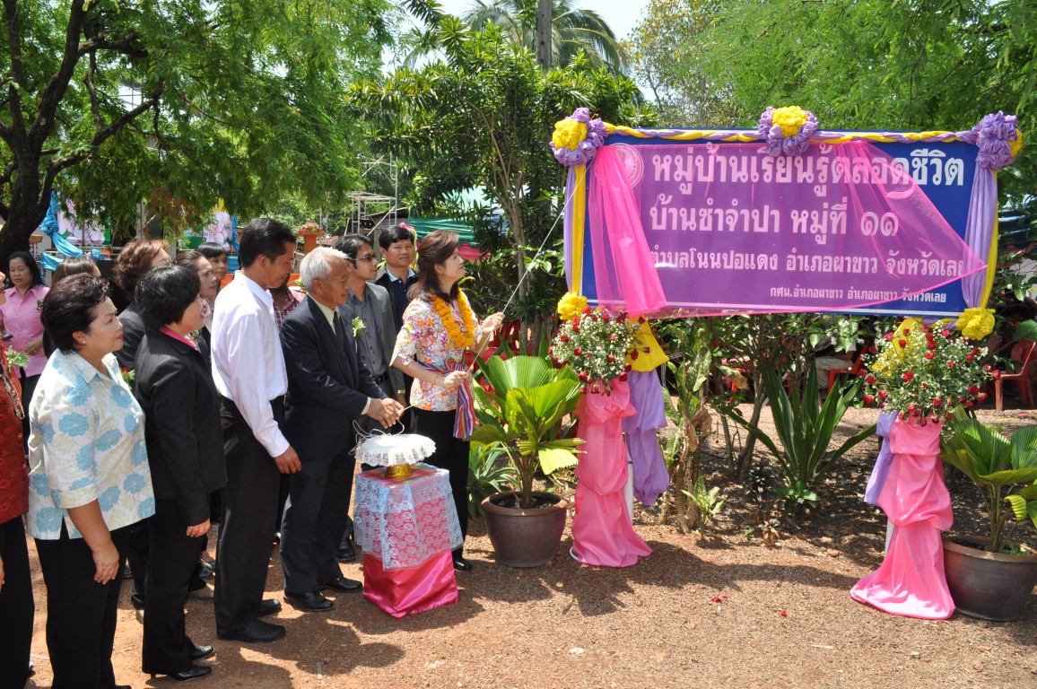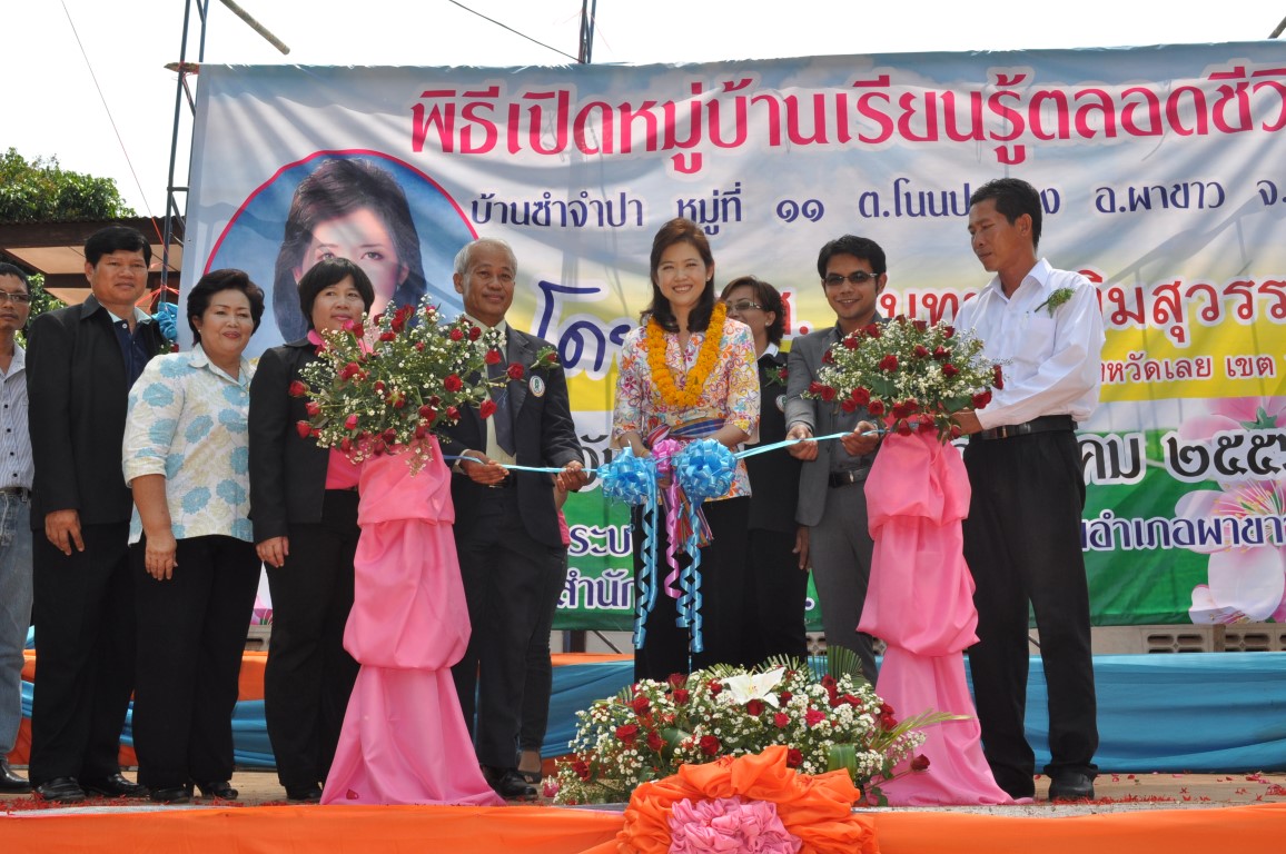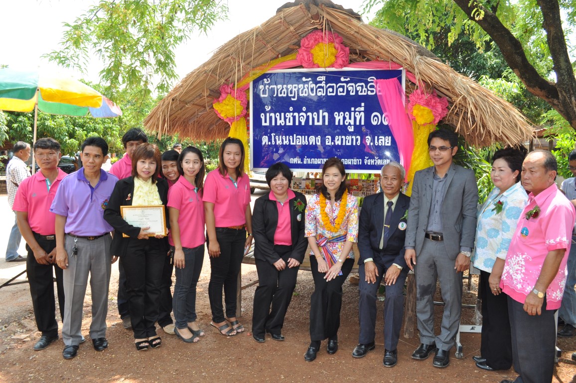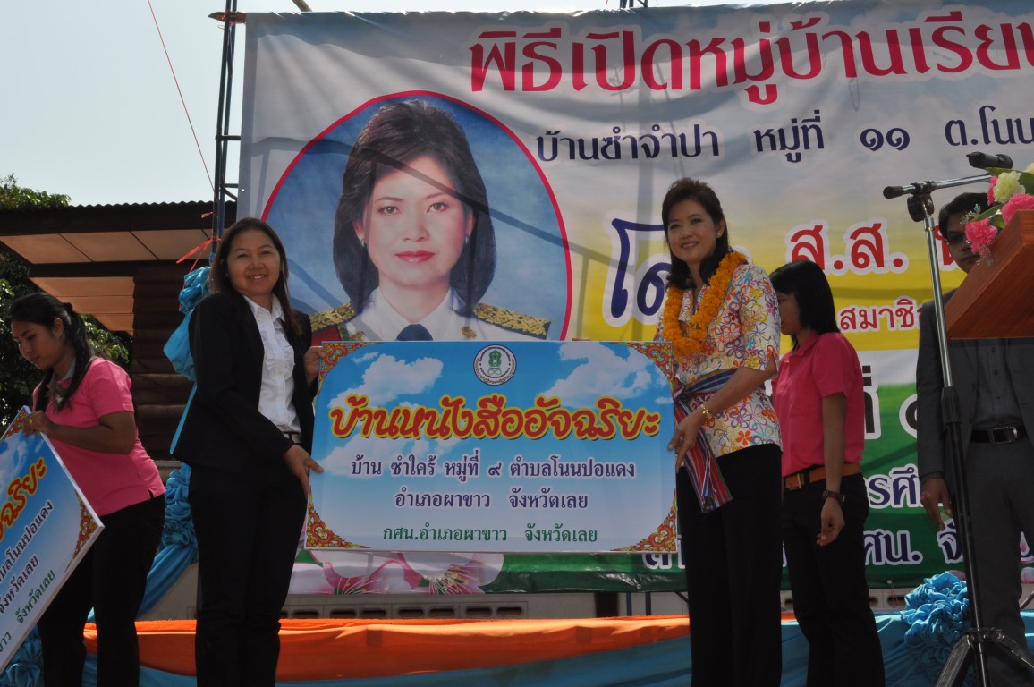 นายบุญโชค พลดาหาญ ผู้อำนวยการ สำนักงาน กศน.จังหวัดเลย ร่วมงานเปิดหมู่บ้านเรียนรู้ตลอดชีวิตแห่งแรกของ กศน.อำเภอผาขาว ที่บ้านซำจำปา หมู่ที่ 11 ต.โนนปอแดง อ.ผาขาว จ.เลย โดยการดำเนินงานของ นางสาวสังวาล สุวรรณโสภา ผอ.กศน.อำเภอผาขาวและทีมงาน ซึ่งได้เรียนเชิญท่าน ส.ส. นันทนา ทิมสุวรรณ สมาชิกสภาผู้แทนราษฎร จังหวัดเลย เขต 2 เป็นประธานในพิธีเปิดดังกล่าว โดยได้รับความร่วมมือจากภาคีเครือข่าย ท้องถิ่นและประชาชนในพื้นที่ให้ความร่วมมือกันเป็นอย่างดี