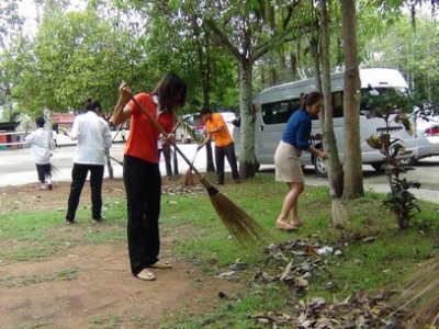 กศน.อำเภอเมืองเลย จัดกิจกรรมบำเพ็ญประโยชน์ ร่วมกันทำความสะอาดศาลาการเปรียญ ห้องน้ำ และการกวาด ลานวัด เก็บขยะ ณ วัดกกม่วงชี อำเภอเมืองเลย จังหวัดเลย