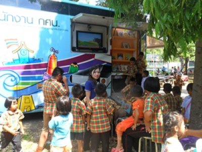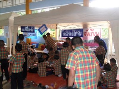 วันที่ ๓๑ พ.ค.๕๖ ห้องสมุดประชาชนอำเภอเอราวัณ จัดกิจกรรมบริการรถโมบายเคลื่อนที่ สู่ กศน.ตำบลเอราวัณ จังหวัดเลย