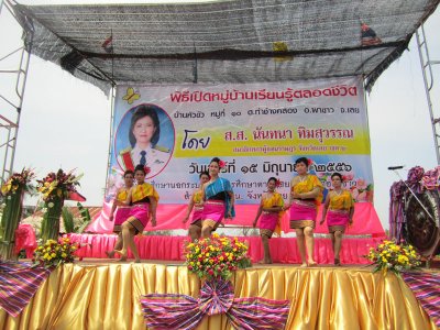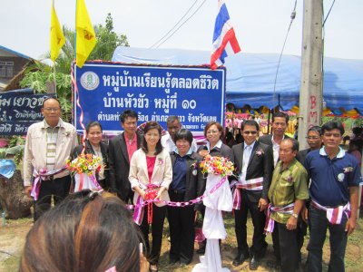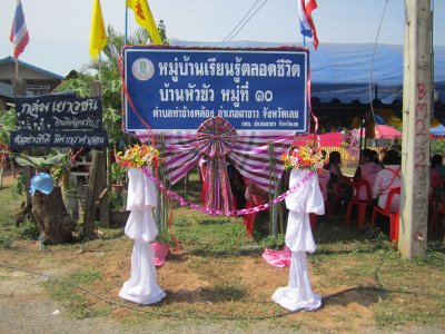 วันเสาร์ที่ ๑๕ มิถุนายน พ.ศ.๒๕๕๖ นำโดยนางสาวสังวาล สุวรรณโสภา ผู้อำนวยการศูนย์การศึกษานอกระบบและการศึกษาตามอัธยาศัยอำเภอผาขาว และบุคลากร จัดพิธีเปิดโครงการหมู่บ้านเรียนรู้ตลอดชีวิต ณ บ้านหัวขัว หมู่ที่ ๑๐ ตำบลท่าช้างคล้อง อำเภอผาขาว จังหวัดเลย โดยได้รับเกียรติจากท่านนันทนา ทิมสุวรรณ ส.ส.จังหวัดเลย เขต ๒ มาเป็นประธานในพิธีเปิดและได้รับเกียรติจากส่วนราชการ องค์กรปกครองส่วนท้องถิ่น ชุมชน ประชาชน มาร่วมงานในพิธีเปิดและร่วมต้อนรับการเปิดงานหมู่บ้านเรียนรู้ตลอดชีวิตในครั้งนี้อย่างด้วย