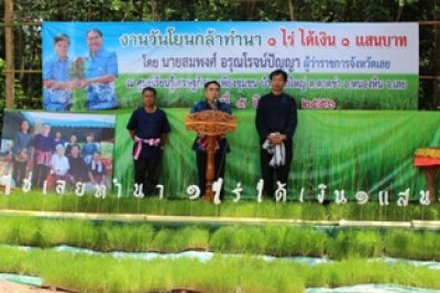 วันที่ ๕ สิงหาคม ๒๕๕๖ กศน.อำเภอหนองหินเข้าร่วมงานวันโยนกล้าทำนา ๑ ไร่ ได้เงิน ๑ แสนบาท