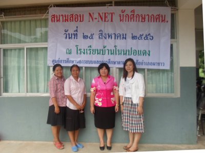 ศูนย์การศึกษานอกระบบและการศึกษาตามอัธยาศัยอำเภอผาขาว ได้ดำเนินการสอบ N-NET (Non-Formal National Education Test) ทดสอบทางการศึกษาระดับชาติ การศึกษานอกระบบโรงเรียน กับผู้เรียนหลักสูตรการศึกษาขั้นพื้นฐาน ประจำภาคเรียนที่ ๑ ปีการศึกษา ๒๕๕๖ ณ สนามสอบโรงเรียนบ้านโนนปอแดง ในวันที่ ๒๕ สิงหาคม พ.ศ.๒๕๕๖