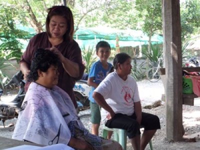 กศน.อำเภอเอราวัณ จัดกิจกรรมห้องสมุดเคลื่อนที่ และให้บริการตัดผมชาย-หญิง ร่วมกับอำเภอ...ยิ้ม และภาคีเครือข่าย เพื่อให้บริการแก่ประชาชน วันที่ ๔ ตุลาคม ๒๕๕๖ ณ.ม.๑ บ้านหนองใหญ่ ต.ผาอินทร์แปลง อ.เอราวัณ จ.เลย