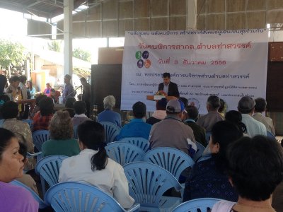 กศน.ตำบลท่าสวรรค์ ร่วมกิจกรรม "วันคนพิการสากล" ในวันที่ ๓ ธันวาคม ๒๕๕๖ ณ หอประชุมองค์การบริหารส่วนตำบลท่าสวรรค์ โดยอาสาพัฒนาผู้พิการชุมชน ร่วมกับ อสม.ท่าสวรรค์ อบต.ท่าสวรรค์ มูลนิธิธิดาเมตตาธรรม รพ.สต.ท่าสวรรค์ หน่วยพัฒนาการเคลื่อนที่ ๒๓ ร.ร.บ้านท่าสวรรค์ และประชาชนในตำบล กิจกรรมครั้งนี้ นำโดยนายปฏิภาณ สุวรรณชาติ หัวหน้าโซนนาสวรรค์ พร้อมครู กศน.ตำบลท่าสวรรค์ และบรรณารักษ์ ได้ให้บริการหนังสือหลากหลายประเภท รวมถึงการจัดมุมอาเซียน เพื่อเป็นการส่งเสริมการอ่านให้กับผู้พิการในชุมชน และประชาชนทั่วไปในตำบลท่าสวรรค์