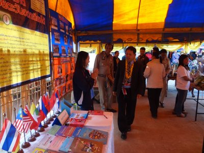กศน.อำเภอนาด้วง นำโดยว่าที่ ร.ต.สุภสัณห์ ภวภูตานนท์ ณ มหาสารคาม ผู้อำนวยการ กศน.อำเภอนาด้วง ร่วมต้อนรับคณะกรรมการตรวจสอบและประเมินผลกำนัน ผู้ใหญ่บ้าน ฯลฯ ผู้มีผลงานดีเด่น ประจำปี 2557 ระดับจังหวัด นายยุทธจักร์ จิระวงค์ประภา ผู้ใหญ่บ้านผาเจริญ หมู่ที่ 4 ตำบลท่าสะอาด ซึ่งมีนายณรงค์ จีนอ่ำ นายอำเภอนาด้วง เป็นประธานพิธี ในการนี้ กศน.อำเภอนาด้วงนำกิจกรรม มุมอาเซียนศึกษา ร่วมให้บริการประชาชนผู้สนใจในงานนี้ด้่วย