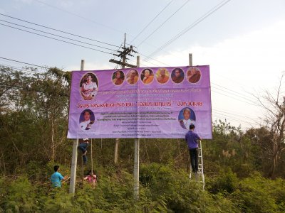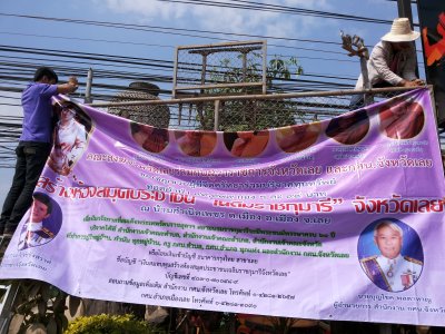 กศน.อำเภอเมืองเลยติดตั้งป้ายประชาสัมพันธ์เชิญชวน ร่วมบริจาคสบทบทุนสร้างห้องสมุดประชาชนเฉลิมราชกุมารี จังหวัดเลย