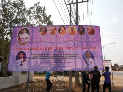 กศน.อำเภอเมืองเลยติดตั้งป้ายประชาสัมพันธ์เชิญชวนพ่อ แม่ พี่ น้อง ประชาชนทุกคน ร่วมบริจาคสบทบทุนสร้างห้องสมุดประชาชนเฉลิมราชกุมารี จังหวัดเลย ณ บ้านกำเนิดเพชร ตำบลเมือง อำเภอเมืองเลย จังหวัดเลย