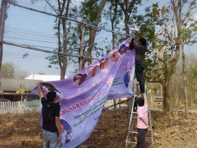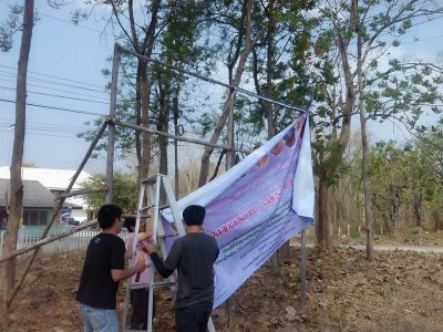 กศน.อำเภอเอราวัณ ดำเนินการติดป้ายประชาสัมพันธ์เชิญชวนประชาชนผู้มีจิตศรัทธา ร่วมบริจาคสมทบทุนสร้างห้องสมุดประชาชน "เฉลิมราชกุมารี" จังหวัดเลย