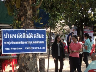 วันที่ ๑๙ กุมภาพันธ์ ๒๕๕๗ ศูนย์การศึกษานอกระบบและการศึกษาตามอัธยาศัยอำเภอหนองหิน ได้เข้าร่วมโครงการอำเภอยิ้มเคลื่อนที่ ณ ศาลากลางบ้าน บ้านนาเหล่าน้อย หมู่ที่ ๙ ตำบลปวนพุ อำเภอหนองหิน จังหวัดเลย ร่วมกับภาคส่วนราชการในอำเภอหนองหินให้บริการประชาชน