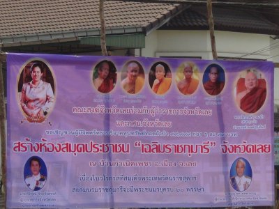 กศน.อำเภอเมืองเลย ติดตั้งป้ายประชาสัมพันธ์ โครงการจัดสร้างห้องสมุดเฉลิมราชกุมารี ณ บ้านหนองผักก้ามหมู่ ๑๓ และบ้านเกิดเพชร