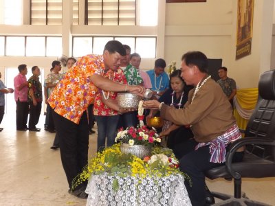 ผอ.กศน.อำเภอ ปากชม คณะครูทุกท่านร่วมกับหัวหน้าส่วนราชการส่วนท้องถิ่นร่วมกิจกรรม รดน้ำขอพรผู้สูงอายุและขอพรจากท่านนายอำเภอปากชมเพื่อเป็นศิริมงคล