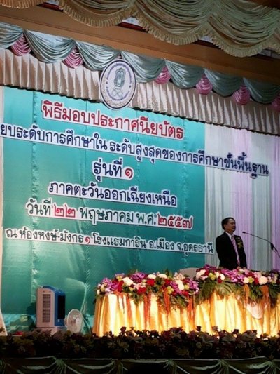 เมื่อวันที่ ๒๒ พฤษภาคม ๒๕๕๗ นายสุพัฒน์ สุวรรณสิงห์ ผอ.กศน.อำเภอเมืองเลย และนางมณีรัตน์ ลุนธิระวงค์ ครูอาสาฯ นำนักศึกษาผู้ผ่านการเทียบระดับการศึกษาในระดับสูงสุด ของการศึกษาขั้นพื้นฐาน รุ่นที่ ๑ จาก กศน.อำเภอเมืองเลย ทั้งหมด ๑๔ คน เข้ารับพิธีมอบประกาศนียบัตรผู้ผ่านการเทียบระดับการศึกษาในระดับสูงสุด โดยมี นายประเสริฐ บุญเรือง เลขาธิการ กศน. เป็นประธานมอบประกาศนียบัตรให้แกนักศึกษาจาก ภาคตะวันออกเฉียงเหนือ ทั้งหมด ณ โรงแรมการิน อำเภอเมือง จังหวัดอุดรธานี ซึ่งกศน.อำเภอเมืองเลย ขอชื่นชมแสดงความยินกับนักศึกษาผู้ผ่านการเทียบระดับการศึกษาในระดับสูงสุด ของการศึกษาขั้นพื้นฐาน รุ่นที่ ๑ จาก กศน.อำเภอเมืองเลย ทั้ง ๑๔ คน