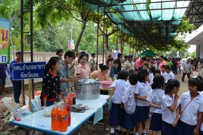 ผู้ใหญ่บ้าน ประชาชนทั่วไป มาในงานอย่างคับคั่ง ทั้งนี้ กศน.อำเภอผาขาว ได้นำไอศกรีมโบราณและตัดผมชาย มาร่วมบริการในกิจกรรมครั้งนี้ด้วย
