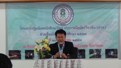 เมื่อวันที่ ๒๙ กรกฎาคม ๒๕๕๗ นายสุพัฒน์ สุวรรณสิงห์ ผอ.กศน.อำเภอเมืองเลย เป็นประธานกล่าวเปิดงานโครงการปฐมนิเทศนักศึกษาใหม่ หลักสูตรประกาศนียบัตรวิชาชีพ (ปวช.) ช่างเชื่อมโลหะ ประจำปีการศึกษา ๒๕๕๗ ณ ห้องประชุมคุรุสัมนาคาร กศน.อำเภอเมืองเลย จังหวัดเลย