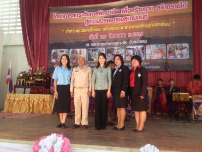 กศน.อำเภอหนองหิน ร่วมจัดโครงการยกระดับการฝึกอาชีพ เพื่อสร้างงาน สร้างรายได้ สู่ความปรองดองสมานฉันท์ "สำหรับชุมชนคนไทเลย เพื่อรองรับประชาคมเศรษฐกิจอาเซียน"