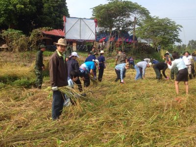 กศน.ตำบลศรีสองรัก ร่วมกิจกรรมโครงการชวนเสี่ยวเกี่ยวข้าว เนื่องในโอกาสมหามงคลเฉลิมพระชนพรรษา ๘๗ พรรษา ๕ ธันวามหาราช