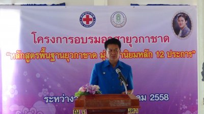เมื่อวันที่ ๑๒ มีนาคม ๒๕๕๘ นายสุพัฒน์ สุวรรณสิงห์ ผอ.กศน.อำเภอเมืองเลย เป็นประธานพิธีเปิดโครงการอบรมอาสายุวกาชาด หลักสูตรพื้นฐานยุวกาชาด มุ่งสู่ค่านิยม ๑๒ ประการ โดยมีคณะวิทยากรอาสายุวกาชาด กศน.อำเภอเมืองเลย มาให้ความรู้แก่นักศึกษา กศน. ซึ่งได้จัดอบรมระหว่างวันที่ ๑๒ - ๑๔ มีนาคม ๒๕๕๘ ณ วัดป่าโพธิ์ธาราม ตำบลนาดินดำ อำเภอเมืองเลย จังหวัดเลย