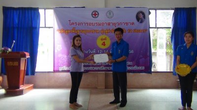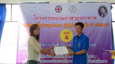 เมื่อวันที่ ๑๓ มีนาคม ๒๕๕๘ นายสุพัฒน์ สุวรรณสิงห์ ผอ.กศน.อำเภอเมืองเลย เป็นประธานมอบวุฒิบัตร ให้กับผู้ผ่านการอบรมอาสายุวกาชาด มุ่งสู่ค่านิยม ๑๒ ประการ ให้แก่นักศึกษา กศน.ตำบลนาดินดำ และกศน.ตำบลน้ำสวย ในการจัดอบรมอาสายุวกาชาด หลักสูตรพื้นฐานยุวกาชาด มุ่งสู่ค่านิยม ๑๒ ประการ รุ่นที่ ๔ ณ วัดป่าโพธิ์ธาราม ตำบลนาดินดำ อำเภอเมืองเลย จังหวัดเลย