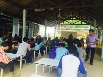 กศน.ตำบลนาโป่ง ปฐมนิเทศน์นักศึกษาใหม่ ภาคเรียนที่ ๑/๒๕๕๘