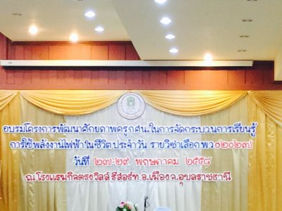 เมื่อวันที่ ๒๗ พฤษภาคม ๒๕๕๘ นายวีระชน ชัชวาล ครู กศน.ตำบล เข้าร่วมอบรมโครงการพัฒนาศักยภาพ ครู กศน.ในการจัดกระบวนการเรียนรู้การใช้พลังงานไฟฟ้าในชีวิตประจำวัน รายวิชาเลือก พว ๐๒๐๒๗ โดยได้เข้าร่วมการอบรมระหว่างวันที่ ๒๗-๒๙ พฤษภาคม ๒๕๕๘ ณ โรงแรมกิจตรงวิลล์ รีสอร์ท อ.เมือง จ.อุบลราชธานี