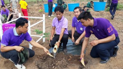 นายสุริยัน พลตื้อ ผอ.กศน.นาด้วง ปลูกต้นไม้ในโครงการปลูกป่าเพื่อพัฒนาสังคมและสิ่งแวดล้อม