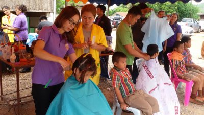 เมื่อวันที่ ๒๓ มิถุนายน ๒๕๕๘ กศน.ตำบลน้ำสวย ร่วมกิจกรรมกับอำเภอเคลื่อนที่ นำบริการตัดผมฟรี ในโครงการอำเภอยิ้ม เคลื่อนที่ คืนความสุขให้กับประชาชน ณ วัดบ้านหนองดอกบัว ตำบลน้ำสวย อำเภอเมืองเลย จังหวัดเลย