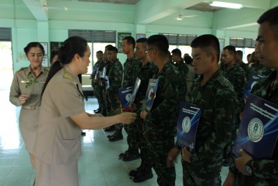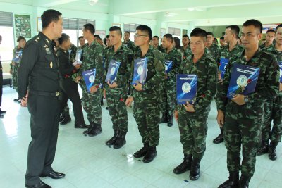พิธีมอบประกาศนียบัตร ผู้สำเร็จการศึกษาหลักสูตรการศึกษานอกระบบระดับการศึกษาขั้นพื้นฐาน ประจำภาคเรียนที่ ๑ ปีการศึกษา ๒๕๕๘ ทหารกองประจำการ ร.๘ พัน ๑