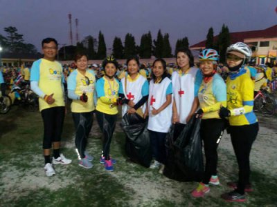นางณัฐญา คำสิงห์ ผู้อำนวยการ กศน.อำเภอวังสะพุง นำคณะบุคลากร และเหล่าอาสายุวกาชาด ร่วมออกหน่วยบริการประชาชน ในกิจกรรมโครงการ Bike foe Dad ปั่นเพื่อพ่อ