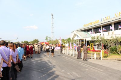 เมื่อวันที่ ๑๕ มกราคม ๒๕๕๙ เวลา ๑๖.๑๐ น. เนื่องด้วยพระเจ้าวรวงศ์เธอ พระองค์เจ้าโสมสวลี พระวรราชาทินัดดามาตุ เสด็จพระราชดำเนินไปทรงปฏิบัติพระราชกรณียกิจในพื้นที่จังหวัดเลย คณะข้าราชการ ทหาร ตำรวจ แม่บ้านเหล่าทัพ ผู้แทนสภากาชาดไทย และกศน.อำเภอเมืองเลย ร่วมเฝ้ารับ-ส่งเสด็จ พระเจ้าวรวงศ์เธอ พระองค์เจ้าโสมสวลี พระวรราชาทินัดดามาตุ เสด็จมาทรงงานและช่วยประชาสัมพันธ์แหล่งท่องเที่ยวของจังหวัดเลย หลายแห่ง เช่น ห้วยกระทิง ภูเรือ ภูป่าเปาะ และอำเภอเชียงคาน ในระหว่างวันที่ ๙ - ๑๕ มกราคม ๒๕๕๙ ณ ท่าอากาศยานเลย จังหวัดเลย