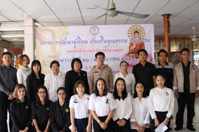 เมื่อวันที่ ๒๖ ธันวาคม ๒๕๕๙ นายสุพัฒน์ สุวรรณสิงห์ ผอ.กศน.อำเภอเมืองเลย เป็นประธานกล่าวเปิดโครงการพัฒนาผู้เรียน ส่งเสริมคุณธรรม จริยธรรม ประจำปี ๒๕๕๙ ณ วัดป่าพุทธยาน บ้านกำเนิดเพชร ต.เมือง อ.เมืองเลย จ.เลย โดยมีคณะบุคลากร ครู และนักศึกษา กศน.อำเภอเมืองเลย เข้ารับการอบรม ซึ่งมี พระอาจารย์ทวีศักดิ์ คุตสีโล และ