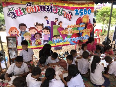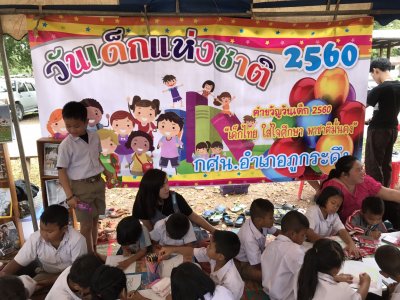 วันที่12 ม.ค.60 ร่วมโครงการอำเภอยิ้ม..เคลื่อนที่ จัดกิจกรรมงานวันเด็ก บริการตัดผม-เสริมสวย ฝึกอาชีพการทำแซนวิส