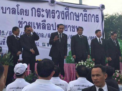 เมื่อวันที่ ๑๓ มกราคม ๒๕๖๐ ที่บริเวณลานพระบรมมรูปทรงม้า พล.อ.ประยุทธ์ จันทร์โอชา นายกรัฐมนตรีและหัวหน้าคณะรักษาความสงบแห่งชาติ (คสช.) เป็นประธานปล่อยขบวนคาราวาน “รัฐบาลโดยกระทรวงศึกษาธิการช่วยเหลือประชาชน” จำนวนกว่า ๙๐๐ คัน พร้อมจัดทีมนักศึกษาและบุคลากรทางการศึกษาช่วยเหลือประชาชนที่ประสบอุทกภัยประมาณ ๓๐๐ ทีม เพื่อบริการแก้ไขและซ่อมแซมสิ่งของที่เสียหาย