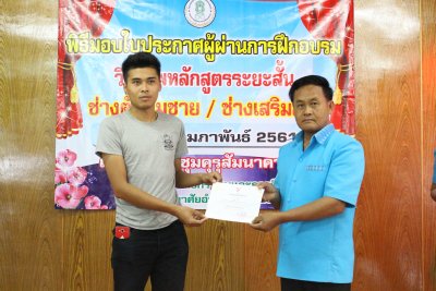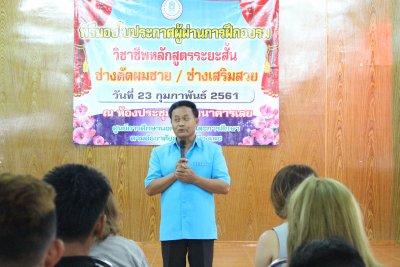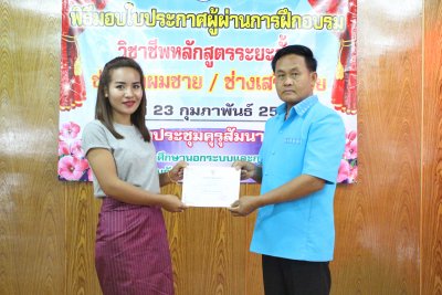 กศน.อ.เมืองเลย มอบใบประกาศผู้ผ่านการฝึกอบรมวิชาชีพหลักสูตรระยะสั้น ช่างตัดผมชาย/ช่างเสริมสวย ประจำปี ๒๕๖๑