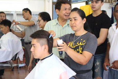 ศูนย์ฝึกอาชีพชุมชน กศน.อำเภอเมืองเลย จัดการศึกษาต่อเนื่องรูปแบบวิชาชีพหลักสูตรระยะสั้น วิชาช่างตัดผมชาย หลักสูตร ๕๐ ชั่วโมง ประจำปี ๒๕๖๑
