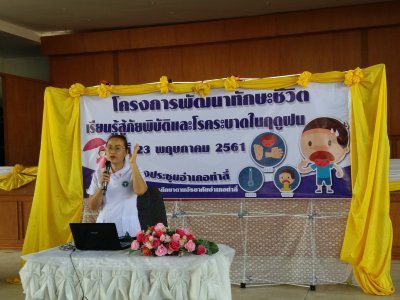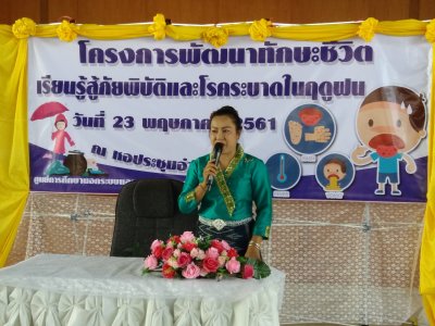 วันที่ 23 พฤษภาคม 2561 เวลา 08.30 น. กศน.อำเภอท่าลี่ จัดโครงการพัฒนาทักษะชีวิต เรียนรู้สู้ภัยพิบัติและโรคระบาดในฤดูฝน โดยมีนางศรวณี อ่อนสำอาง ผอ.กศน.อำเภอท่าลี่ กล่าวเปิดโครงการและพบปะกับประชาชนสอบถามสภาพปัญหา ชีแนะแนวทางการเข้าร่วมกิจกรรม ในการให้ความรู้เรื่องโรคระบาด ได้รับเกียรติจากคุณหมอพัชรินทร์ อุดจันทร์ ตำแหน่ง พยาบาลวิชาชีพ จาก รพ.สต.บ้านเมี่ยง ได้มาให้ความรู้แก่ประชาชนที่เข้าร่วมโครงการ ณ หอประชุมอำเภอท่าลี่