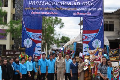พร้อมคณะผู้บริหาร บุคลากร และครู กศน.จังหวัดเลย ทั้ง 14 อำเภอ ให้การต้อนรับ ในงานมีการออกร้าน