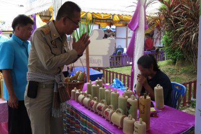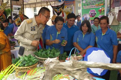 จำหนายสินค้าและสาธิตการผลิตสินค้า จากศูนย์ฝึกอาชีพชุมชน ของ กศน.อำเภอ ทั้ง 14