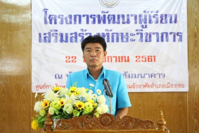 เมื่อวันที่ ๒๒ พฤศจิกายน ๒๕๖๑ นายปัญญา ศาสตรา ผอ.กศน.จังหวัดเลย เป็นประธานพิธีเปิดโครงการพัฒนาผู้เรียนเสริมสร้างทักษะวิชาการ ประจำปี ๒๕๖๑ ณ ห้องประชุมคุรุสัมมนาคาร กศน.อำเภอเมืองเลย จ.เลย โดยมีนายสุพัฒน์ สุวรรณสิงห์ ผอ.กศน.อำเภอเมืองเลย เป็นผู้กล่าวรายงานการเปิดโครงการพัฒนาผู้เรียนเสริมสร้างทักษะวิชาการ ประจำปี ๒๕๖๑ ซึ่งมีนักศึกษา กศน.อำเภอเมืองเลย ทั้ง ๑๔ ตำบล เข้าร่วมการอบรมโดยมีวัตถุประสงค์เพื่อสร้างความรู้ความเข้าใจในการเรียนตลอดจนจบหลักสูตร ในระดับประถมศึกษา ระดับมัธยมศึกษาตอนต้น และมัธยมศึกษาตอนปลาย