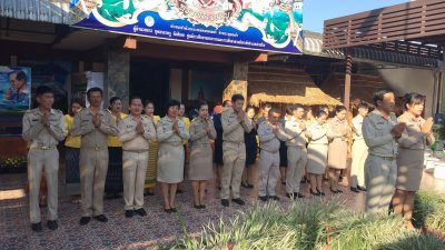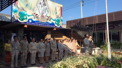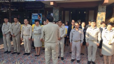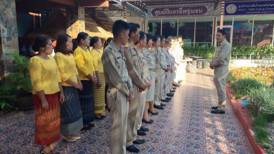 .อำเภอด่านซ้าย ร่วมกิจกรรมเคารพธงชาติ ร้องเพลงชาติไทย และสวดมนต์ไหว้พระ ณ บริเวณลานหน้าเสาธง