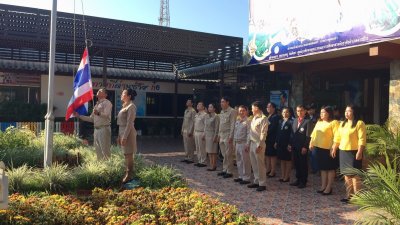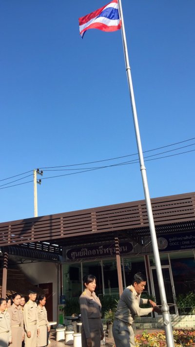 บุคลากร กศน.อำเภอด่านซ้าย ร่วมกิจกรรมเคารพธงชาติ ร้องเพลงชาติไทย และสวดมนต์ไหว้พระ ณ บริเวณลานหน้าเสาธง กศน.อำเภอด่านซ้าย เนื่องในวันที่ 5 ธันวาคมของทุกปี กำหนดให้เป็น วันชาติในประเทศไทย