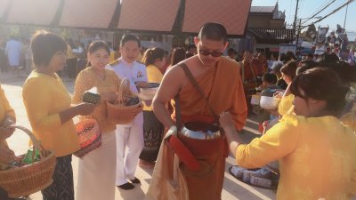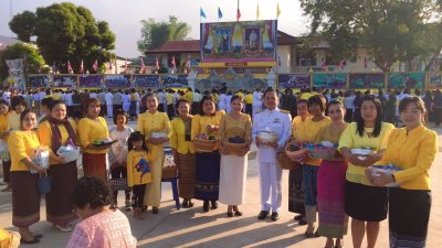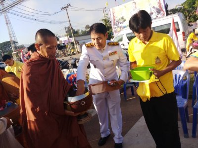 ร่วมพิธีทำบุญตักบาตรพระสงฆ์ จำนวน 50 รูป พิธีถวายพานพุ่มราชสักการะ