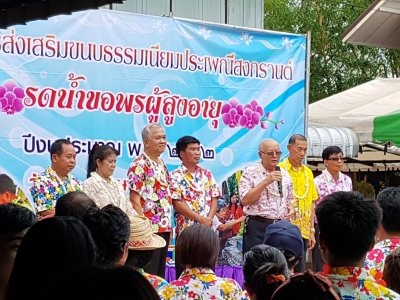 เมื่อวันที่ 10 เมษายน 2562 นายปัญญา ศาสตรา ผู้อำนวยการ สำนักงาน กศน.จังหวัดเลย เป็นประธานพิธีเปิดโครงการส่งเสริมขนบธรรมเนียมประเพณีสงกรานต์ พิธีรดน้ำขอพรผู้สูงอายุประจำปี 2562 ณ สำนักงาน กศน.จังหวัดเลย โดยมีคณะผู้บริหาร กศน.อำเภอทั้ง 14 แห่ง และ อดีตผู้บริหาร กศน. ได้แก่ นายคอมสัน จันทศร นายปัญญา วีระวัฒน์ นายดุลยนัย ยมคำ นายดิศกร นาคเสบ นายประเด็จ แปลงกันทา นางปราณณ์สรา น้ำดอกไม้ นำคณะบุคลากรเข้าร่วมกิจกรรมกันอย่างพร้อมเพรียง ซึ่งโครงการนี้มีวัตถุประสงค์เพื่อรณรงค์ให้สังคมตระหนักในคุณค่าของผู้สูงอายุที่มีคุณภาพเพื่อสร้างขวัญกำลังใจ ให้ผู้สูงอายุเกิดความภาคภูมิใจในความเป็นผู้สูงอายุ และช่วยสังคมไทยอยู่เย็นเป็นสุขเพื่อสืบสานอนุรักษ์รักษาขนบธรรมเนียมประเพณีไทยอันดีงาม ให้มีความยั่งยืนตลอดไป