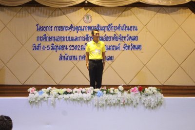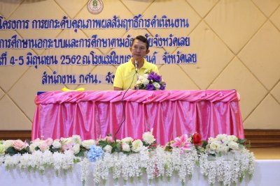 เมื่อวันที่ ๔ มิถุนายน ๒๕๖๒ นายชนาส ชัชวาลวงศ์ รองผู้ว่าราชการจังหวัดเลย เป็นประธานพิธีเปิดโครงการการยกระดับคุณภาพผลสัมฤทธิ์การดำเนินงานการศึกษานอกระบบและการศึกษาตามอัธยาศัยจังหวัดเลย โดยมี ดร.ปัญญา ศาสตรา ผู้อำนวยการสำนักงาน กศน.จังหวัดเลย เป็นผู้กล่าวการจัดโครงการฯ พร้อมนำคณะผู้บริหาร คณะบุคลากร ครู, ครูอาสาสมัครการศึกษานอกโรงเรียน, ครู กศน., ครู ศรช., บรรณารักษ์ และครู้ผู้สอนคนพิการ ทั้ง ๑๔ อำเภอ เข้าร่วมโครงการฯ ระหว่างวันที่ ๔ - ๕ มิถุนายน ๒๕๖๒ ณ โรงแรมใบบุญแกรนด์ อำเภอเมืองเลย จังหวัดเลย