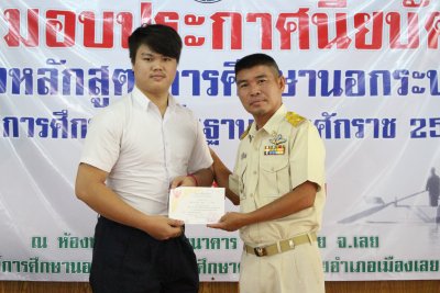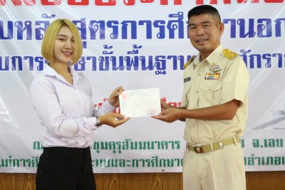 กศน.อ.เมืองเลย มอบประกาศนียบัตรผู้จบหลักสูตรการศึกษานอกระบบระดับการศึกษาขั้นพื้นฐานพุทธศักราช ๒๕๕๑ ประจำปีการศึกษา ๒๕๖๑