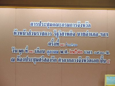 วัน พุธ ที่ 30 เดือน ตุลาคม พ.ศ. 2562 สำนักงาน กศน.จังหวัดเลย ว่าที่ ร.ท.จำนงค์ นนทะมาศ รองผู้อำนวยการสำนักงาน กศน.จังหวัดเลย เข้าร่วมการประชุมคณะกรมการจังหวัด หัวหน้าส่วนราชการ รัฐวิสาหกิจ นายอำเภอ ฯลฯ ครั้งที่ 10