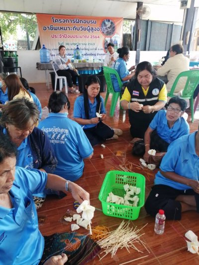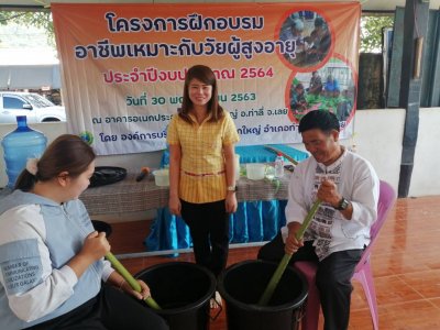 วันที่ 30 พฤศจิกายน 2563 นางนงลักษณ์ พร้อมจะบก ผอ. กศน.อำเภอท่าลี่ มอบหมายให้นางสาววรัญญา มลทากุล ครู กศน.ตำบลโคกใหญ่ และนางสุดสงวน กรมเกลียว ครู กศน.ตำบลท่าลี่ ร่วมเป็นวิทยากรให้กับองค์การบริหารส่วนตำบลโคกใหญ่ ในโครงการฝึกอบอาชีพเหมาะกับวัยผู้สูงอายุ ประจำปีงบประมาณ 2564 จำนวนผู้เข้าร่วมโครงการ 40 คน ณ อาคารอเนกประสงค์บ้านโคกใหญ่ อำเภอท่าลี่ จังหวัดเลย