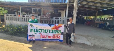 ศส.ปชต.น้ำแคม มอบป้ายประชาสัมพันธ์ "หมู่เฮาชาวเลย ไม่ขายเสียง" ให้กับผู้นำชุมชนได้นำไปติดตั้งประจำหมู่บ้าน ตำบลน้ำแคม อำเภอท่าลี่ จังหวัดเลย