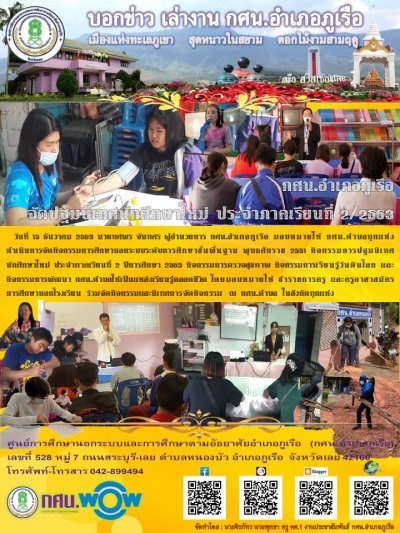 ธันวาคม 2563 นายทศพร จันทศร ผู้อำนวยการ กศน.อำเภอภูเรือ มอบหมายให้ กศน.ตำบลทุกแห่ง ดำเนินการจัดกิจกรรมการศึกษานอกระบบระดับการศึกษาขั้นพื้นฐาน พุทธศักราช