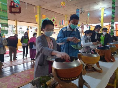 กศน.อำเภอปากชมร่วมกิจกรรมทำบุญตักบาตรเนื่องในกิจกรรมโครงการ "อำเภอ..ยิ้มเคลื่อนที่"