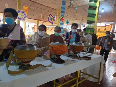 บุคลากรกศน.ตำบลปากชมเข้าร่วมกิจกรรมทำบุญตักบาตร พบปะให้บริการประชาชนเคลื่อนที่พร้อมทั้งเยี่ยมให้กำลังใจผู้ป่วยติดเตียงในพื้นที่ บ้านนาค้อ ตำบลปากชม เนื่องในกิจกรรมโครงการ "อำเภอยิ้ม..เคลื่อนที่" ประจำเดือนธันวาคม 2563